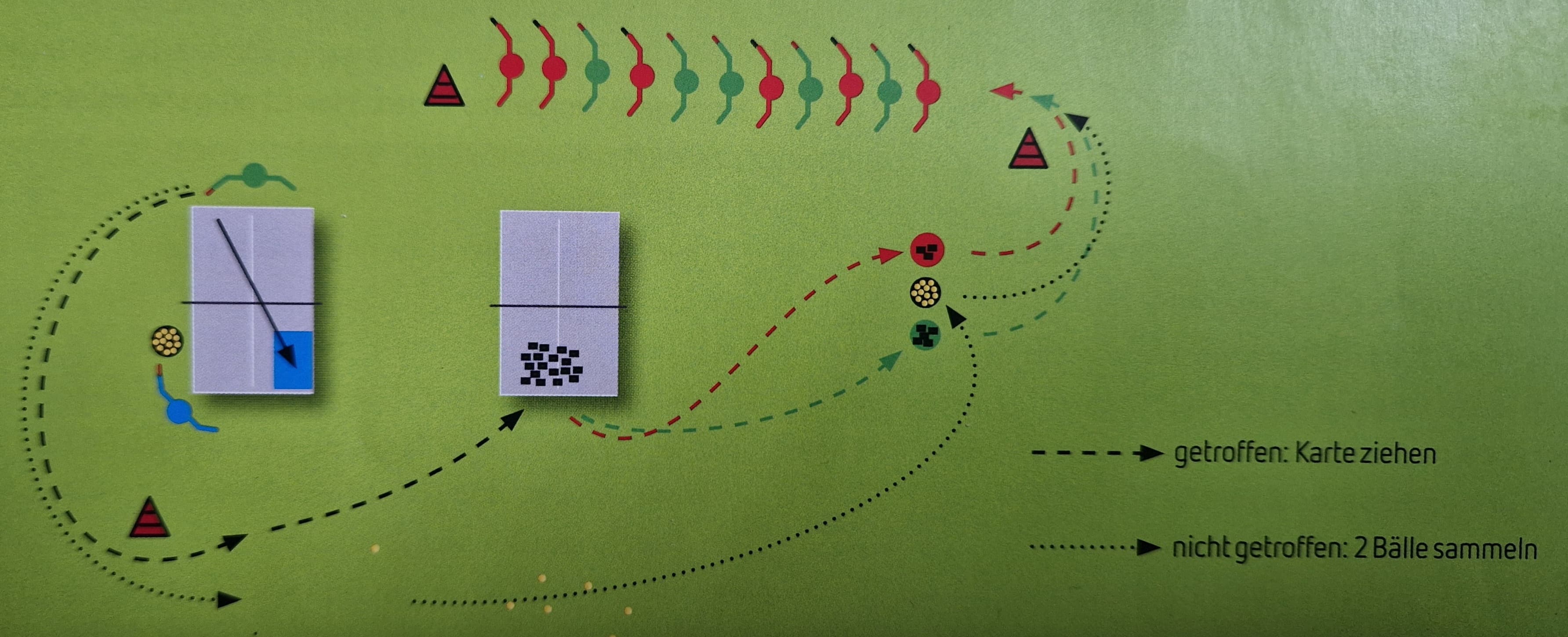 - Macht Spiler einen Fehler, sammelt er zwei Bälle ein und stellt sich wieder in der Reihe an.